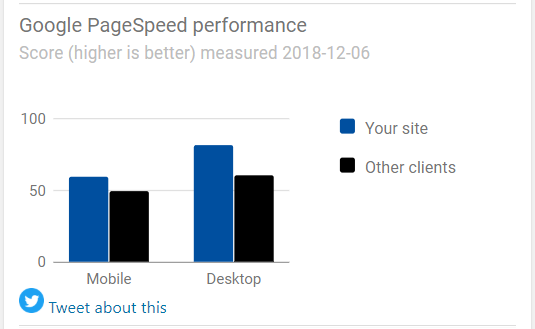 Es ist gut zu wissen, dass der Google PageSpeed-Test ein sehr kritischer Test ist. Die Punktzahl von etwa 60 auf dem Handy mag nicht so gut erscheinen, aber in Googles Geschwindigkeitstest ist sie gar nicht so schlecht. Deshalb sollten Sie vor allem den Vergleich mit unseren anderen Kunden heranziehen. Das ergibt ein realistischeres Bild.